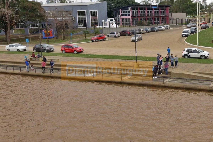 Con esos niveles, el tradicional paseo costero presentó este fin de semana sus playas completamente cubiertas por el agua, que golpeaba contra el murallón de la calle baja, tal como muestran las imágenes captadas -este domingo- por el drone de Diario Río Uruguay.