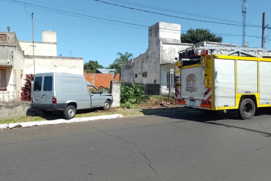 Según explicaron desde Bomberos Voluntarios, una unidad de rescate debió intervenir en el lugar para asistir al conductor de una utilitaria que habría colisionado con otro vehículo estacionado y que, tras el impacto inicial, chocó y destruyó el muro de una vivienda.