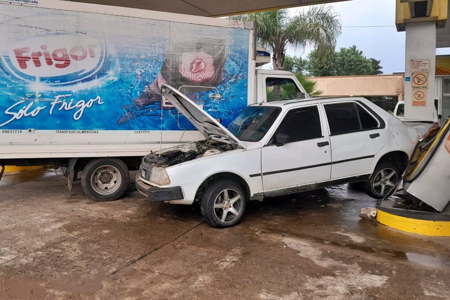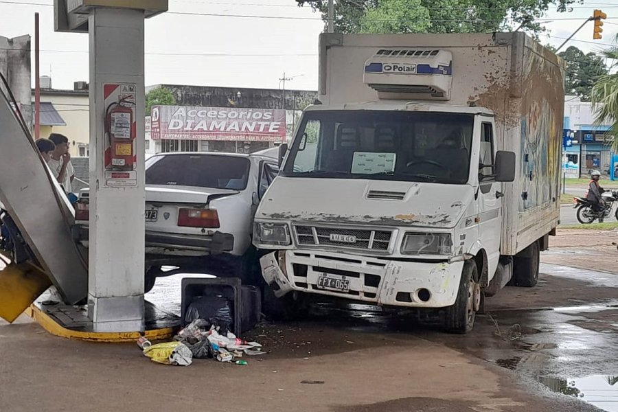 El choque fue tan violento, que el automóvil terminó tumbando el surtidor que fue parcialmente arrancado de su base, tal como documentó un cronista de Diario Río Uruguay.