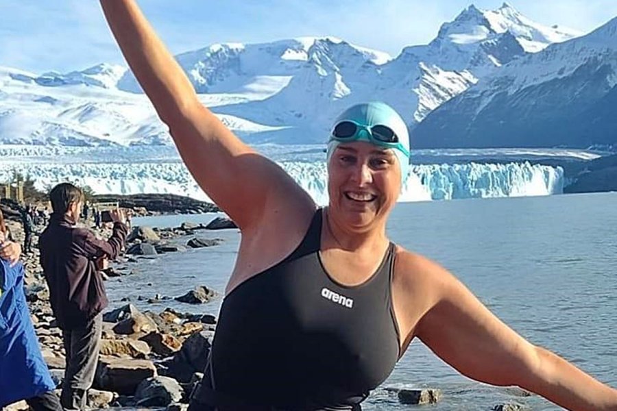 Nadadores de Concordia compiten en las heladas aguas del glaciar Perito Moreno