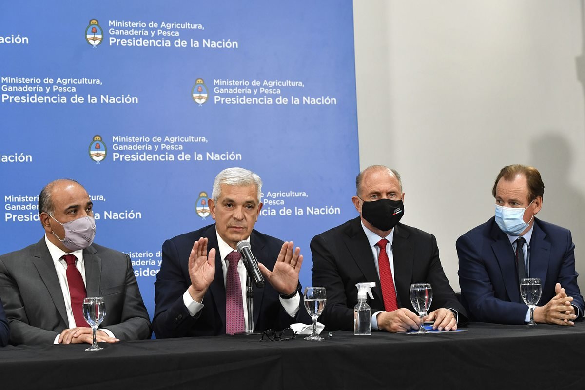 Precisó que "hoy tuvimos una reunión en el Ministerio de Agroindustria donde estuvieron los cuatro representantes de las entidades rurales, los gobernadores, el jefe de Gabinete, Juan Manzur; los ministros del Interior, Wado de Pedro y de Agroindustria, Julián Domínguez, donde abordamos un temario cuyos puntos principales eran dos".
