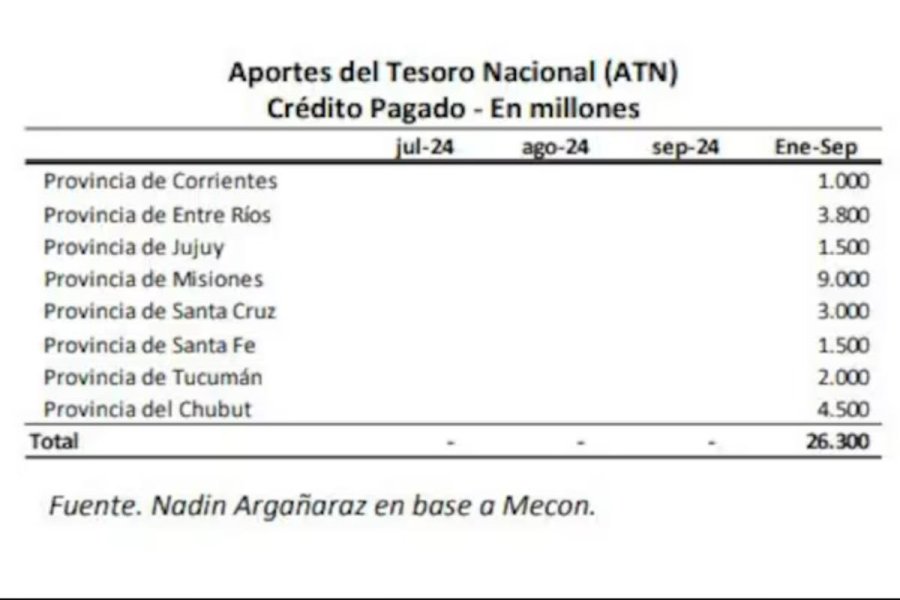 Según afirma la pluma de la periodista Delfina Celichini, “un informe del Instituto Argentino de Análisis Fiscal (Iaraf), de Nadin Argañaraz, precisa que los gobernadores que ayudaron a la Casa Rosada en el Congreso fueron beneficiados con fondos de la administración central. Misiones fue la provincia que más Aportes del Tesoro Nacional (ATN) recibió en lo que va del año: $9000 millones de pesos. La siguen Chubut ($4500 millones), Entre Ríos ($3800 millones), Santa Cruz ($3000 millones) y Tucumán ($2000 millones)”.