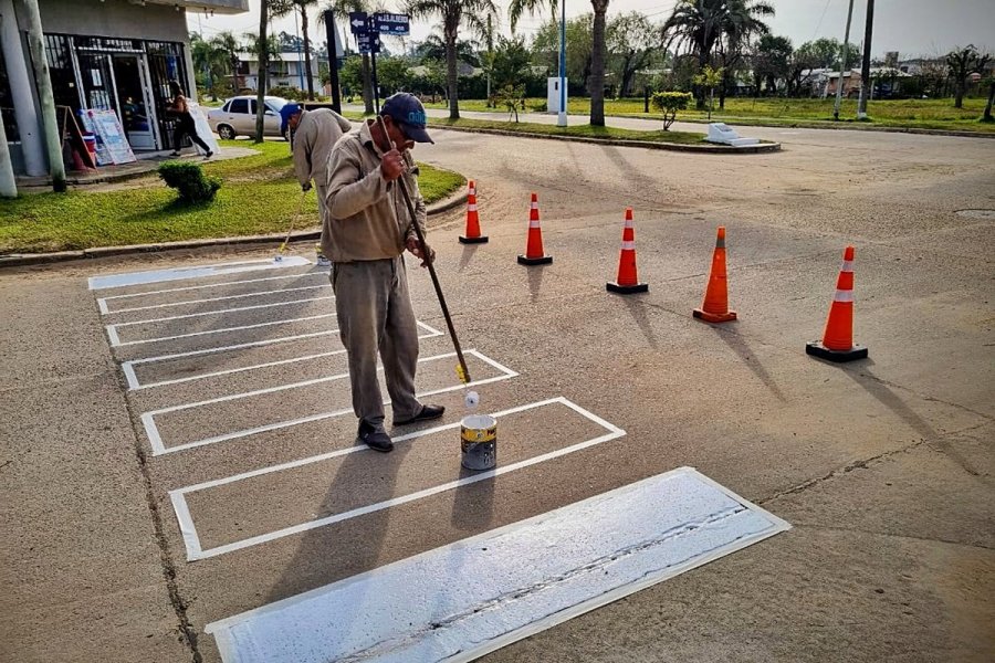 Asimismo, previo al fin de semana largo, se comenzó a trabajar en el pintado y demarcación de sendas peatonales en la Av. Juan B. Alberdi.