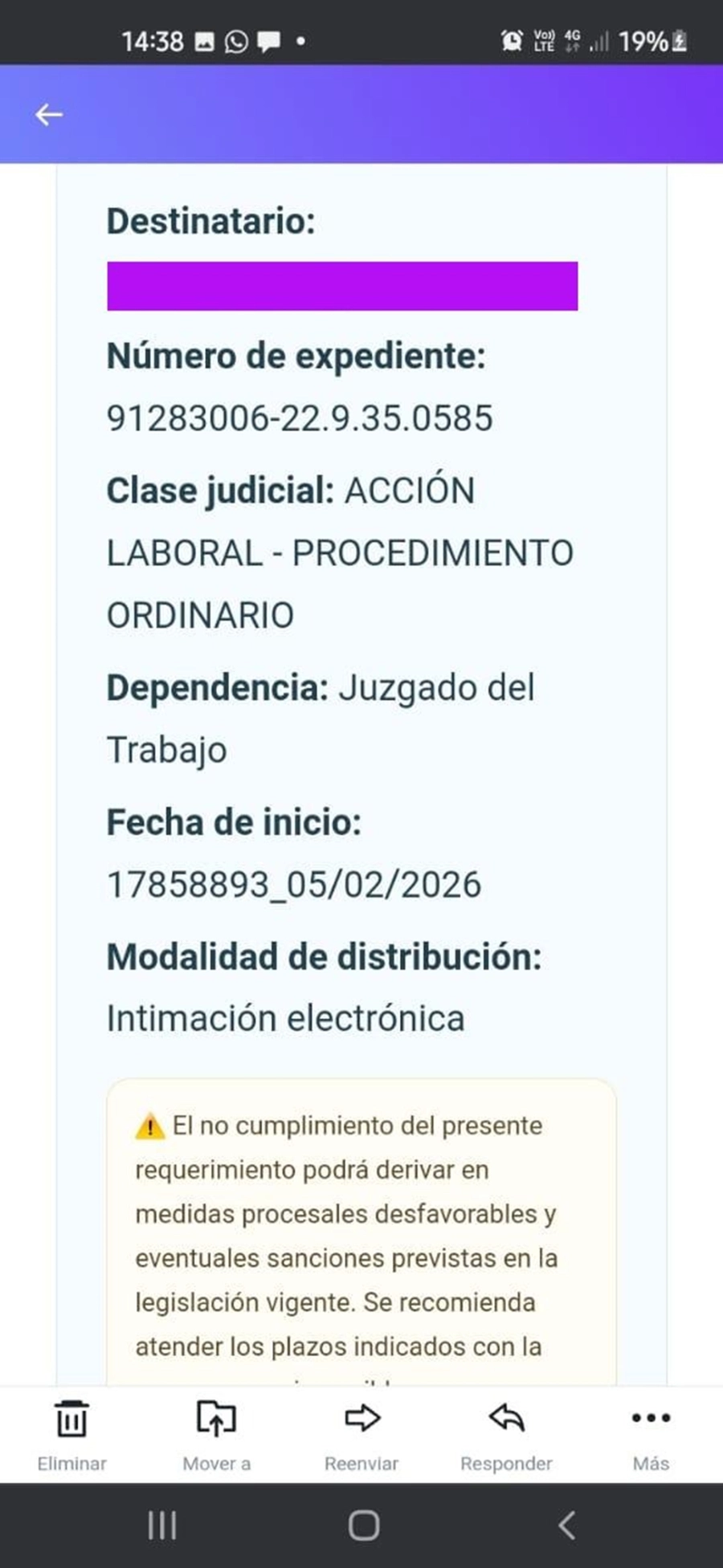 Ante esta situación, se aclara que la justicia laboral, tanto a nivel local como provincial, no realiza comunicaciones directas a ciudadanos mediante mensajería electrónica o correos electrónicos en relación con causas judiciales.
