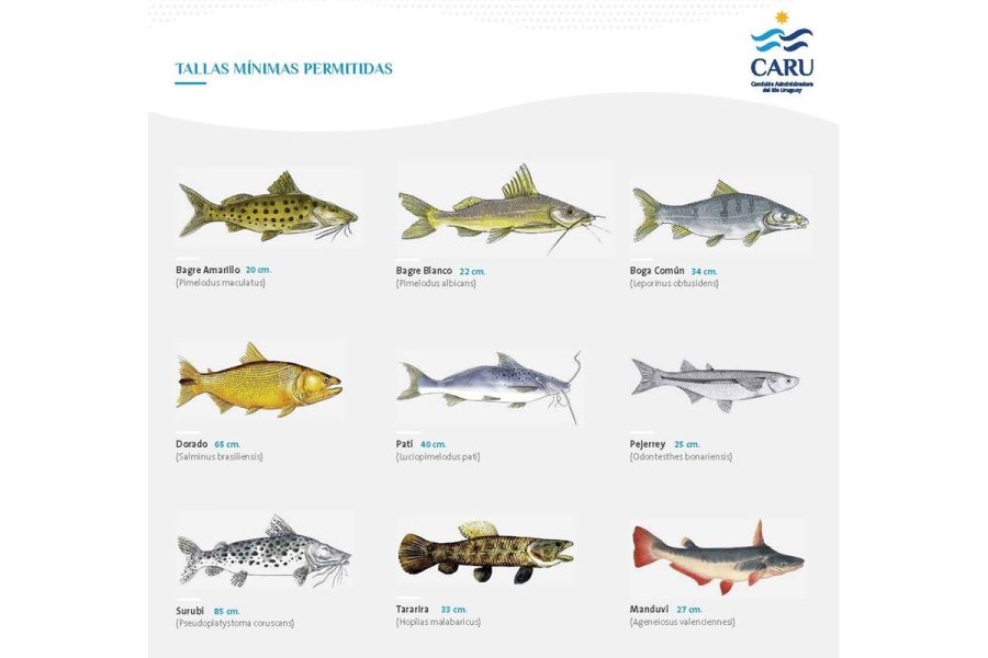 La Comisión Administradora del Río Uruguay (CARU), recordó al público que desarrolla actividades de pesca que deben respetar estrictamente la normativa acerca de las tallas mínimas de captura de las diferentes especies.