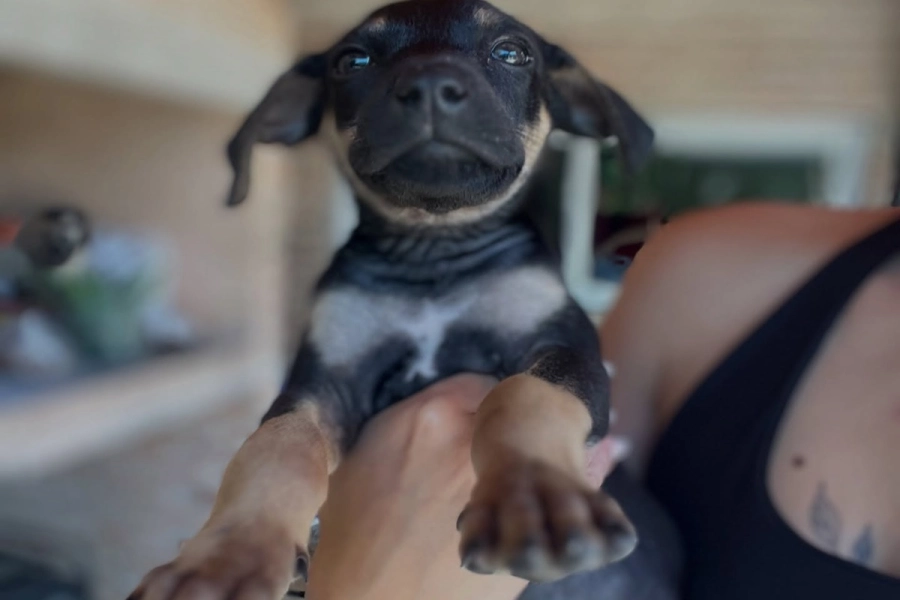 Cumplidos los plazos indicados, los cachorros y la madre fueron bañados con un shampoo especial, lo que permitió eliminar completamente las pulgas. En ese proceso también comenzaron a mostrarse sus personalidades “Manu, más tranquila y amante del agua; Duko, más rústico y desconfiado con la ducha”, contó Valentina.