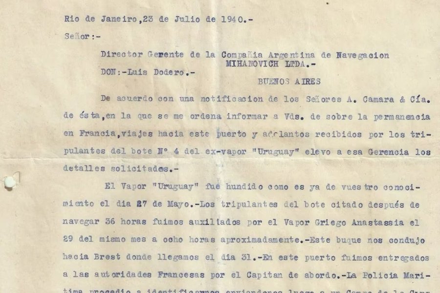 Marcela Borgo es la hija de Orlando, el tercer oficial del vapor Uruguay: “Mi mamá decía que lo habían hundido dos veces, porque según ella también estaba en el Río Tercero, aunque no tengo pruebas de eso. A mi papá no le gustaba hablar de estas cosas ni que le preguntaran por el hecho. Nunca comentaba nada, se lo guardó. Lo que sé, fue a través de mi mamá. Cuando ella murió años atrás encontramos todos los papeles que mi hijo Tomás te envió. Y ahí están los detalles de qué sucedió en el buque y cómo volvió al país. Mi papá llegó, después, a ser capitán de ultramar. En 1962, ELMA licitó la construcción de un barco y lo ganó un astillero en Yugoslavia. Y lo enviaron a él. Fuimos para allá y vivimos en una ciudad llamada Opatija, cercana a Trieste. Cuando lo estaban por terminar, mamá y yo volvimos a la Argentina, y allá el barco se quemó. Papá tuvo un infarto y ya no pudo navegar. Trabajó en ELMA pero en tareas de escritorio, y cinco años después falleció”.