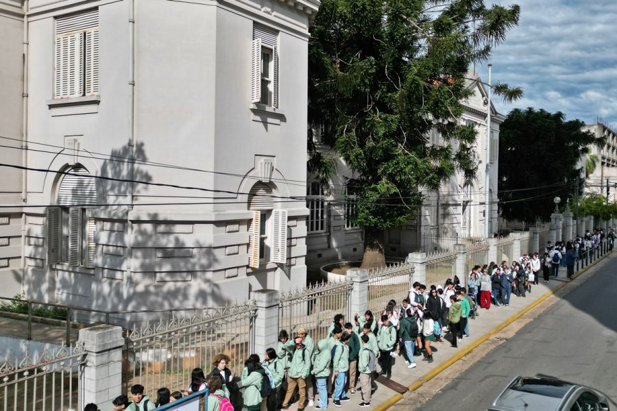 Puntualmente a las 13,30 hs. desde el interior del establecimiento educativo, ubicado sobre calle Urquiza, comenzaron a salir los alumnos y docentes, a los que se sumaron los padres que esperaban en las afueras del edificio.
