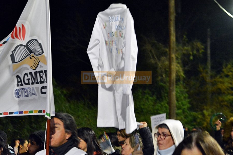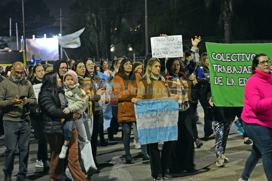 La manifestación fue muy parecida a la del pasado viernes, en la Plaza 25 de Mayo, ya que tuvo cantos con fuertes reclamos hacia el gobierno nacional de Javier Milei y hacia la gestión de Rogelio Frigerio, con el eje en el tema salarial y también contra el aumento del 3% en los descuentos relacionados a la reforma de la Caja de Jubilaciones de la Provincia.