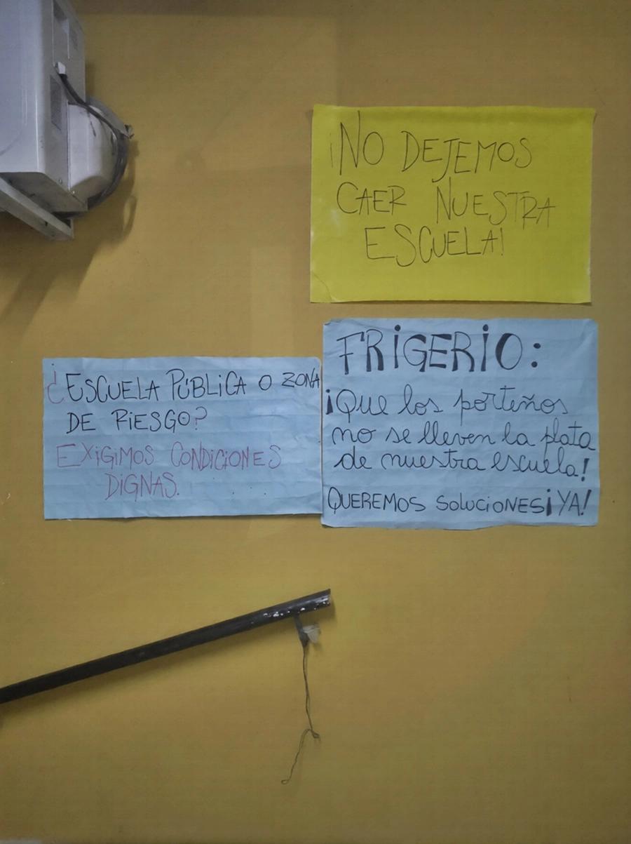 Como se informara oportunamente, denuncian que el edificio presenta múltiples falencias y sus directivos, docentes, padres y alumnos coinciden en que el dictado de clases se dificulta al extremo y no están dadas las condiciones de seguridad.