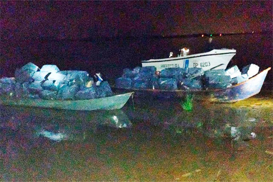 El secuestro fue resultado de los patrullajes que se realizan en la zona de frontera para prevenir el delito que permitieron localizar, en plena madrugada de este miércoles, dos embarcaciones mientras navegaban por la Isla Pelada - kilómetro 204 del río Uruguay - con varios bultos en su interior.