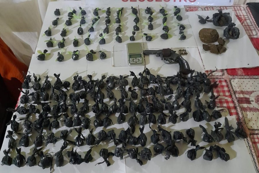 En uno de los procedimientos, la policía secuestró 211 envoltorios de marihuana con un peso de 247 gramos, un arma de fuego calibre 22 y cartuchos del mismo calibre, 2 plantas de la especie vegetal cannabis, trozos varios de sustancia vegetal compactada cannabis por un peso de 171 gramos, 1200 pesos y 3 celulares.