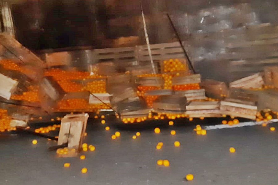RUTA 14: Volcó un camión y llenó de fruta la autovía
