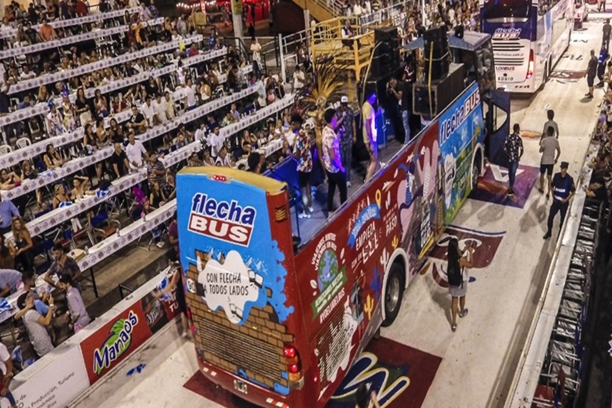 La oportunidad de continuar creciendo con su música llegó de la mano de la empresa de viajes Flecha Bus, con la que después de presentar un proyecto finalmente lograron que la firma les confíe la tarea de recorrer las fiestas más importantes del país, en un micro descapotable, presentando un tema que identifica exclusivamente a la empresa en cada evento.