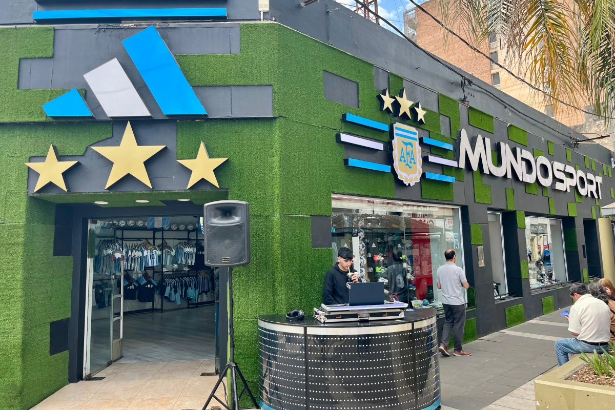 En el local cuentan con “la camiseta del primer recambio, la del segundo recambio, tenemos la indumentaria de prensa” y, además, tienen “camisetas de otros países como Alemania, Italia, España. Todo oficial, porque somos agentes oficiales de Adidas”.