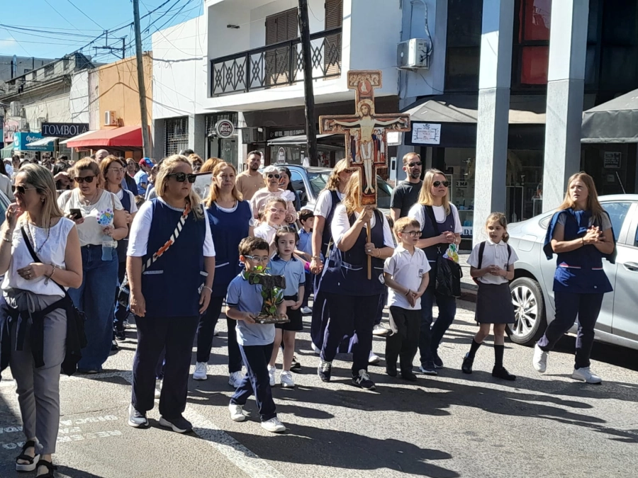 Un colegio concordiense peregrinó por la ciudad. En diálogo con un cronista de Diario Río Uruguay presente en el lugar, la catequista María Itatí Vallejos, del Colegio Capuchinos, explicó que “estamos celebrando la Fiesta de San Francisco de Asís, que es nuestro santo patrono”.