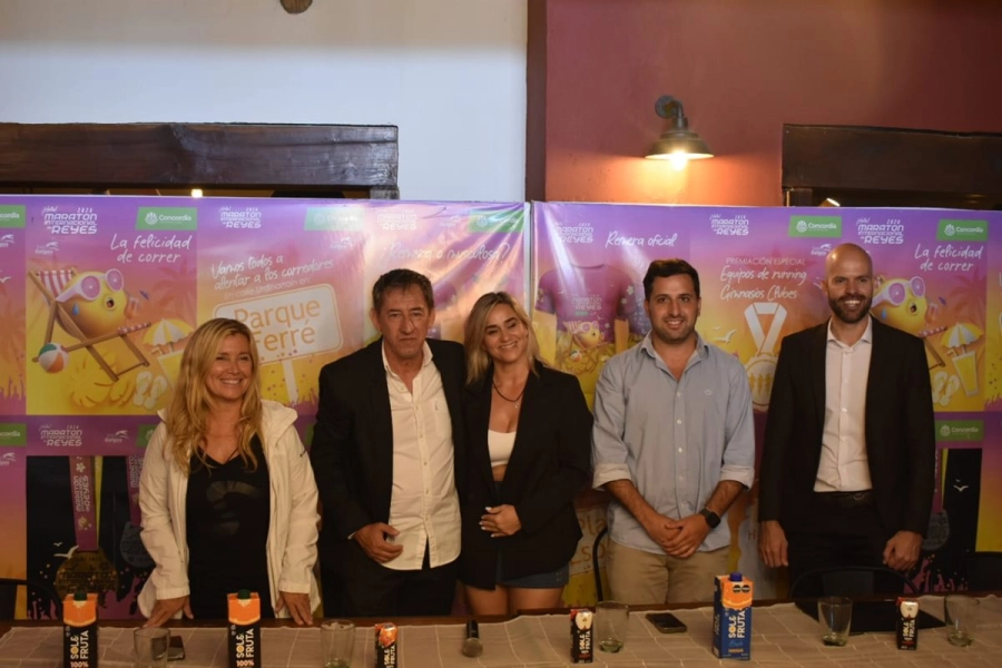 Presentacion Maraton de Reyes. La ciudad de Concordia vivió este jueves la presentación oficial de la 47° Maratón Internacional de Reyes, uno de los eventos deportivos más tradicionales y convocantes de la región. Del lanzamiento participaron el organizador de la competencia e integrante del equipo Los Galgos, Marcelo Flores; el secretario de Gobierno de la Municipalidad de Concordia, Luciano Del Ollio; la subsecretaria de Deportes, Ivana Pérez y Víctor Cossi, integrante del equipo de marketing y redes del evento.