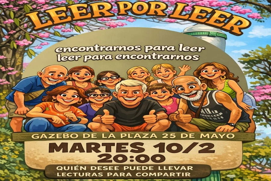 Leer para leer en Plaza 25. Este martes se llevará a cabo en Concordia una nueva edición de “Leer por leer”, una jornada de lectura abierta para todo público que promueve el encuentro entre personas a partir del intercambio de textos y experiencias. La iniciativa es impulsada por Lazos en Red y se caracteriza por su formato libre, participativo y gratuito.