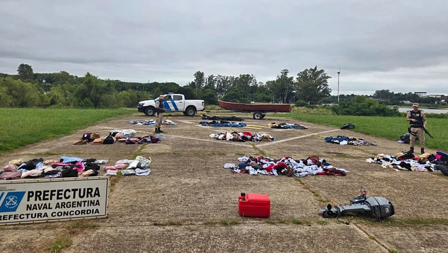 Con intervención del Juzgado Federal de Concordia, se procedió al secuestro de 10 bultos conteniendo 901 prendas de vestir, un bote de chapa de seis metros de eslora y un motor fuera de borda de 15 HP, elementos vinculados a la maniobra ilegal.