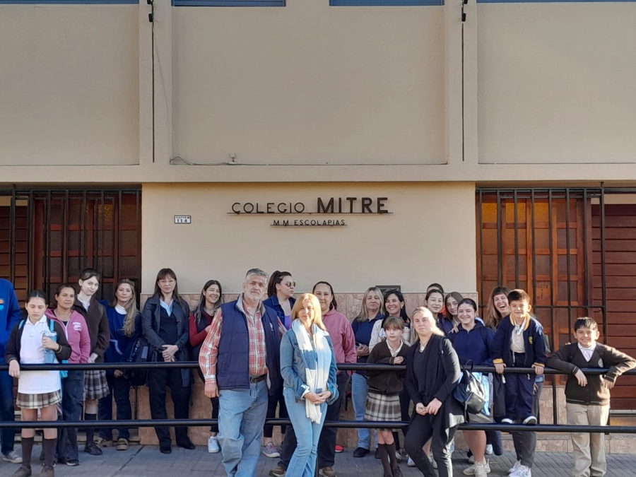 Alrededor de las 7:15 de este lunes, un grupo de padres se reunió en la entrada del Colegio Mitre para llevar a cabo una “sentada pacífica en repudio al despido del profe Alan”.