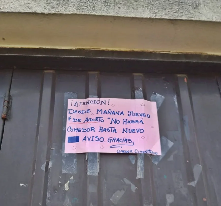 En ese contexto, Arévalo explicó que "hasta que no haya la firma de un nuevo convenio, lamentablemente, justo hoy en el día de San Cayetano, tuvimos que suspender la actividad del comedor comunitario".