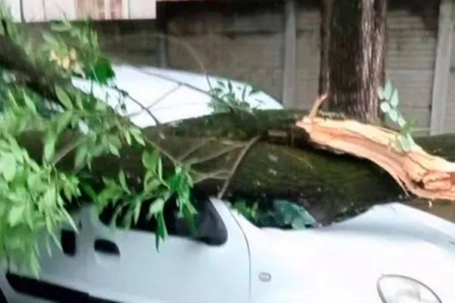 Aun así, los daños ya eran visibles en distintos sectores de la ciudad. Uno de los episodios más complejos ocurrió en Churruarín y Padre Grella, donde un auto quedó varado debido al agua acumulada que impidió la circulación normal. Además, se reportaron ramas caídas, anegamientos y postes inclinados en varias zonas.