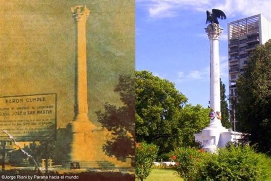 Monumento entrerriano a San Martin. El 16 de julio de 1851, un año después del fallecimiento de José de San Martín, el gobernador Justo José de Urquiza dictó un decreto que ordenaba la erección de una columna en homenaje al Libertador en la plaza principal de Paraná (entonces plaza 1º de Mayo), con la indicación de inscribir a su pie los nombres de las victorias que consolidaron la independencia argentina.