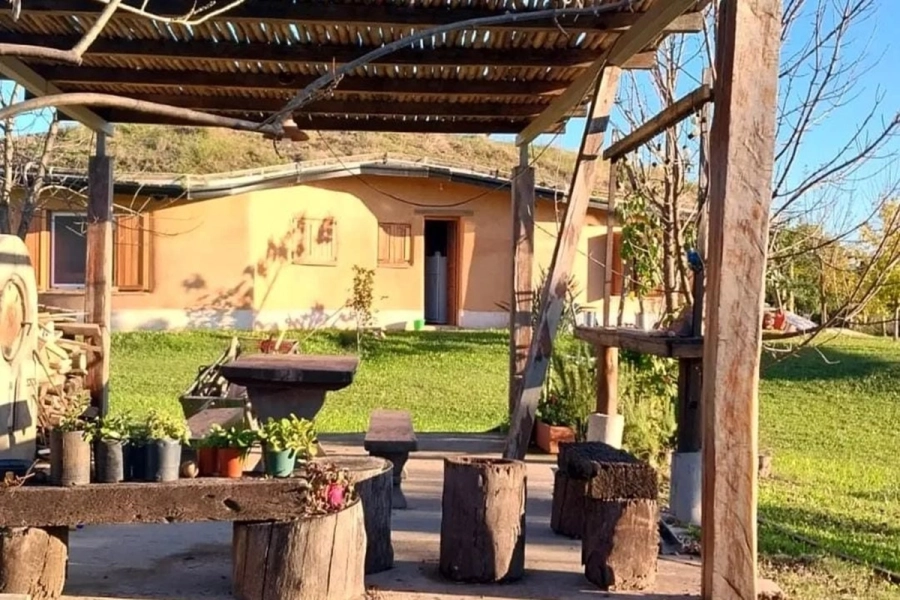 Hace cinco años, Verónica junto a su familia, su padre también es arquitecto, comenzó la construcción de una casa de barro, en un campo sobre la Ruta Provincial N° 2, a unos pocos kilómetros del pueblo de Santa Ana. El proyecto finalizó en noviembre del 2025, siendo un atractivo para quienes transitan por allí.