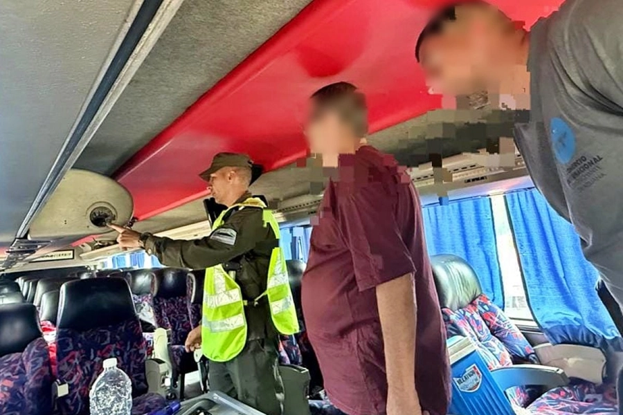 Según informó Gendarmería, el ómnibus fue detenido por personal del Escuadrón 56 y de la Unidad de Delitos Complejos y Procedimientos Judiciales “Gualeguaychú”, quienes realizaron el control documentológico del rodado y de sus ocupantes.