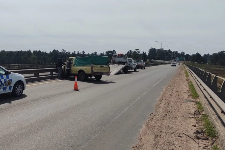 En el lugar constataron que una pick up marca Ford modelo F100, que circulaba en sentido sur–norte, había perdido el control e impactado contra la baranda oeste del puente, quedando detenida sobre la cinta asfáltica en el carril rápido.