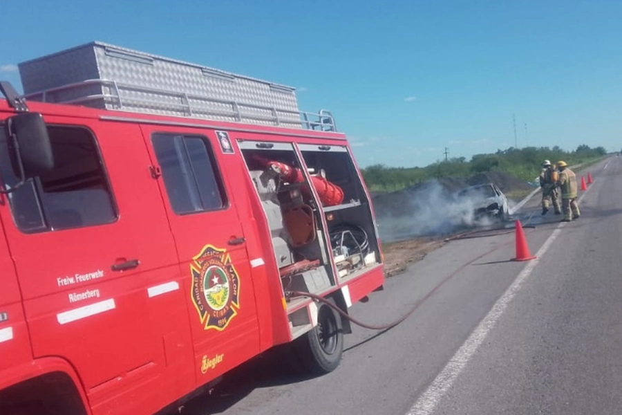 Al arribar, los bomberos encontraron el vehículo totalmente tomado por el fuego, que además había alcanzado los pastizales de la banquina. Se trabajó con una línea de agua para sofocar las llamas y evitar su propagación.